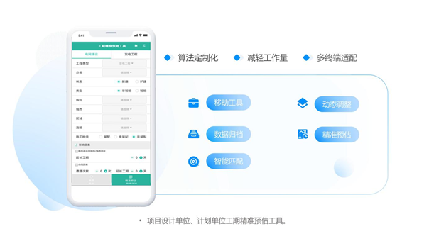 • 算法定制化:根據(jù)行業(yè)標準、工程類型及海拔、氣候等外部因素,多場景定制工期算法;