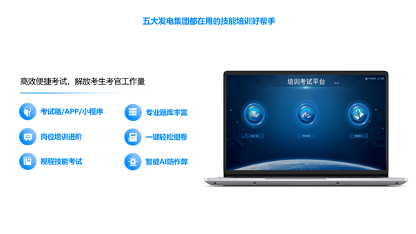 培訓(xùn)考試平臺(tái)由考試箱和培訓(xùn)考試系統(tǒng)組成,在現(xiàn)場(chǎng)培訓(xùn)考試場(chǎng)景下,利用考試箱自帶投影儀、答題器,無需專用場(chǎng)地,只需一面墻即可完成培訓(xùn)及考試,有效解決考試人員多、專用場(chǎng)地不足的問題;在遠(yuǎn)程培訓(xùn)考試場(chǎng)景下,利用平臺(tái)內(nèi)置多種作弊識(shí)別算法,自動(dòng)識(shí)別掛機(jī)、替考、切屏等違規(guī)行為。平臺(tái)內(nèi)置電力行業(yè)課件與題庫(kù),支持小程序、APP、PC多端接入。