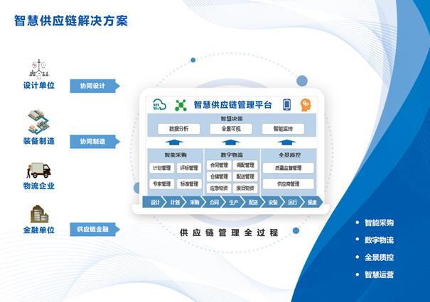 智慧供應鏈管理平臺,依托“云大物移智”新一代信息技術,打造智能采購、數(shù)字物流、全景質(zhì)控三大業(yè)務鏈,為企業(yè)構建內(nèi)外高效協(xié)同的智慧供應鏈體系。平臺能夠全面提升企業(yè)運營分析決策、資源優(yōu)化配置、風險監(jiān)控預警、數(shù)據(jù)資產(chǎn)應用、應急調(diào)度指揮等能力,使計劃匹配更精準、履約協(xié)同更高效、物資交付更快捷,為企業(yè)提供高質(zhì)量、高效率的供應鏈管理支撐。