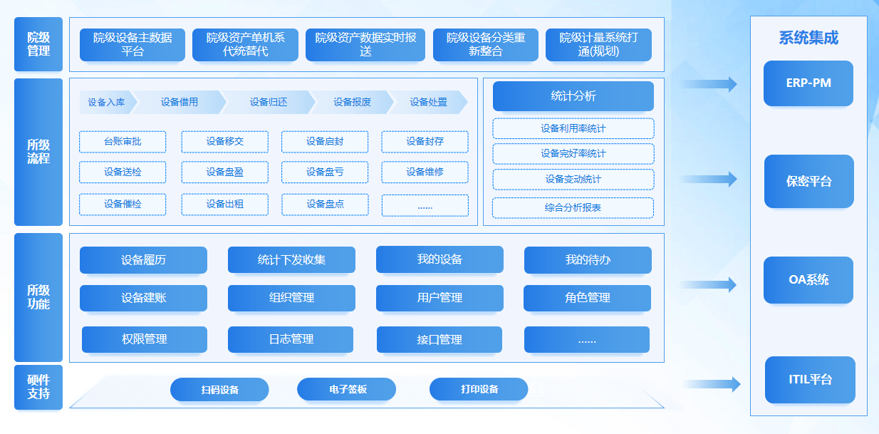 智能管理,高效運維:支持資產全生命周期管理,覆蓋采購、入庫、使用、維修、報廢全流程,降低人工維護成本;