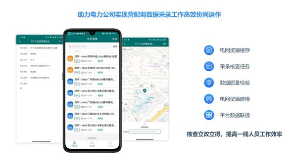 營配采錄核查是一款旨在提高營配數(shù)據(jù)現(xiàn)場核查效率、提升采錄質(zhì)量、實現(xiàn)電網(wǎng)資源及時更新的微應(yīng)用。該微應(yīng)用以營銷業(yè)務(wù)系統(tǒng)與電網(wǎng)GIS平臺為基礎(chǔ)支撐,以移動作業(yè)終端和手機為載體設(shè)計并開發(fā)營配采錄核查功能,能夠?qū)崿F(xiàn)核查任務(wù)下發(fā)-現(xiàn)場數(shù)據(jù)核查-數(shù)據(jù)質(zhì)量檢驗-成果數(shù)據(jù)入庫的作業(yè)全流程閉環(huán)管控,達到采錄作業(yè)標(biāo)準(zhǔn)化、數(shù)據(jù)成果規(guī)范化的目的,從管理手段上有效保障數(shù)據(jù)與現(xiàn)場的一致性,通過營銷業(yè)務(wù)應(yīng)用系統(tǒng)、GIS系統(tǒng)、PMS系統(tǒng)、數(shù)據(jù)結(jié)構(gòu)化平臺等多系統(tǒng)互聯(lián),實現(xiàn)營配數(shù)據(jù)現(xiàn)場核查立改立得,提高一線工作人員的獲得感,確保電網(wǎng)資源及時更新、實時有效。