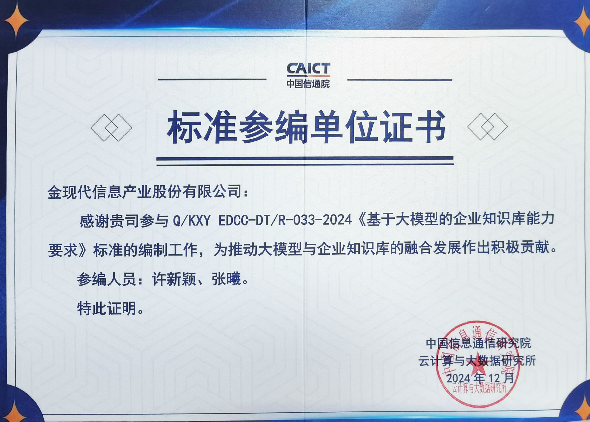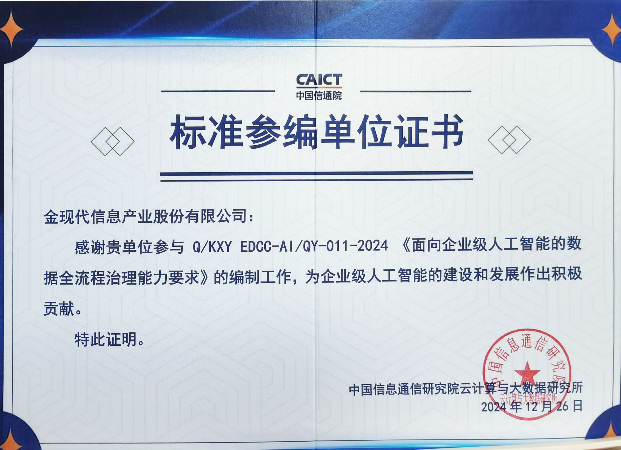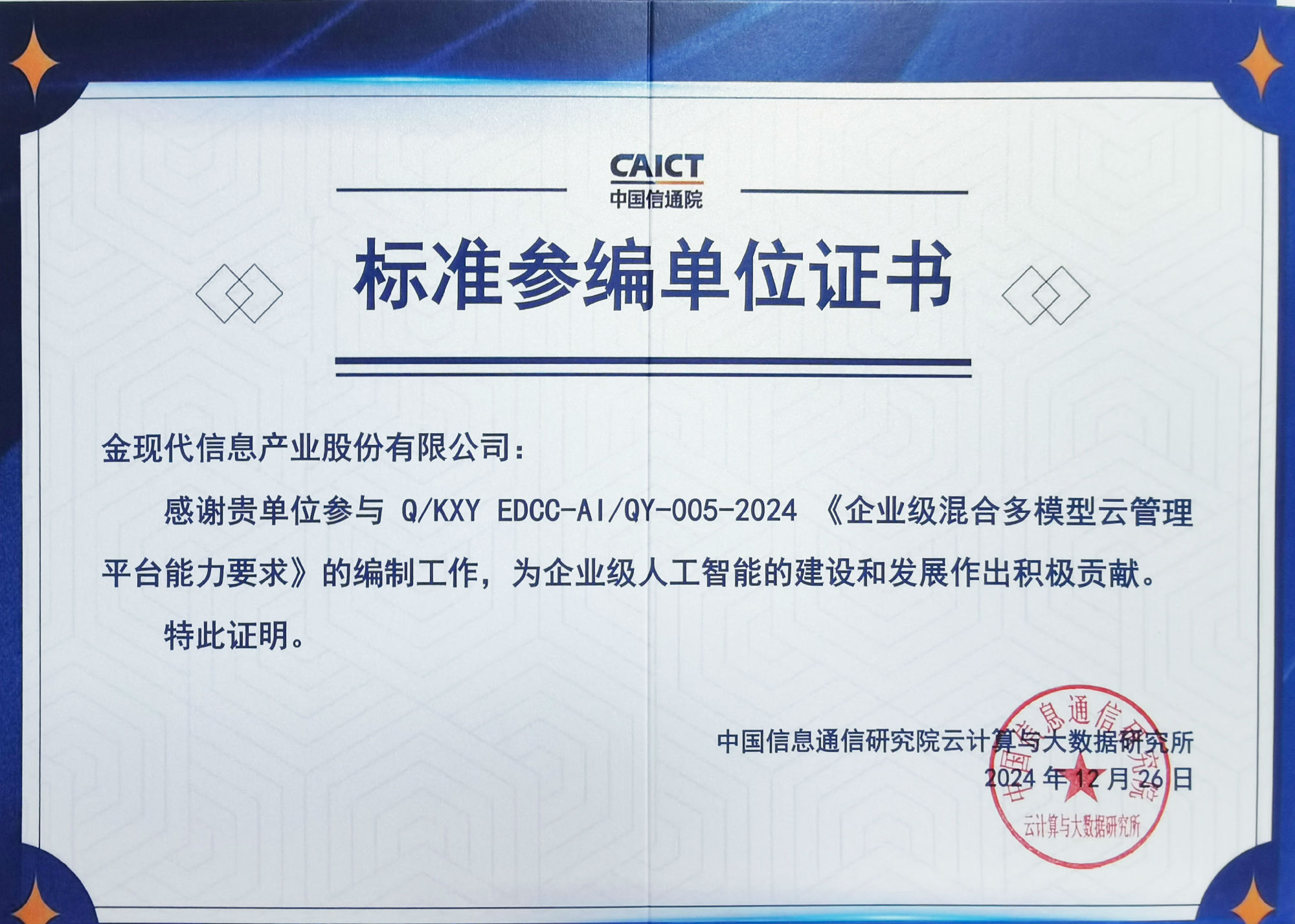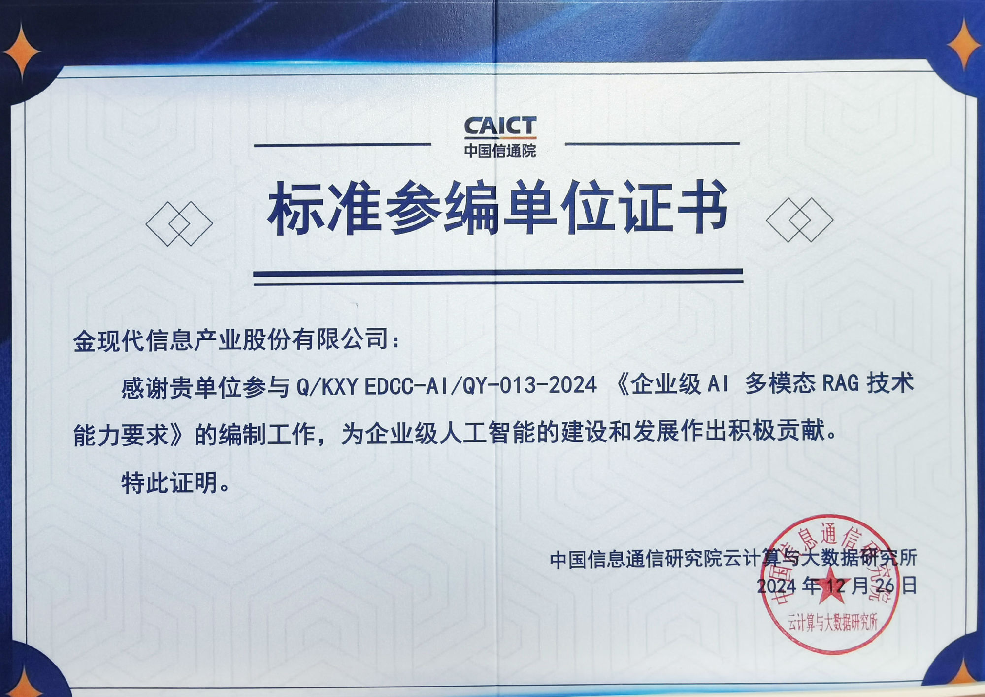 金現(xiàn)代參編中國(guó)信通院6項(xiàng)大模型標(biāo)準(zhǔn),推動(dòng)企業(yè)級(jí)AI應(yīng)用落地